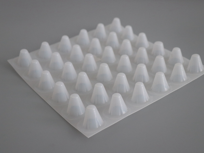 采用擠出吸附等特殊工藝壓型成封閉突起的柱狀、半錐狀殼體,形成一種膜、殼連續(xù),具有立體空間和一定支撐剛度,液體和氣體可以在其內(nèi)流動排泄的板材。是一種潛在功能很多的功能性材料,使用中很方便地構筑出架空層,形成排水、排氣通道,達到隔音、隔振的功能。在土木建筑工程領域中可廣泛用于建筑屋面系統(tǒng)的層內(nèi)架空、種植屋面的排水透氣,建筑地下室防水系統(tǒng)的排水保護,室內(nèi)地面的防潮隔熱保護,公路鐵路隧道的排水保護等。在城市土地、空間、材料資源日益珍貴的今天,塑料排水板提供更有價值的選擇。