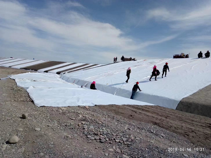 土工布作為土工膜的保護(hù)層,使保護(hù)防滲層不受損壞。為減少紫外線照射,增加抗老化性能,更好采用埋入法鋪設(shè)。材料自身的連接,防滲薄膜的連接方式可歸納為三種,即粘結(jié)法、焊接法以及硫化法,視防滲薄膜的原材料的不同而選擇,所有連接縫的抗?jié)B性能均應(yīng)進(jìn)行檢查,以防接縫連接不好而滲漏。我司有專業(yè)的施工團(tuán)隊(duì),現(xiàn)場施工、現(xiàn)場指導(dǎo)安裝。